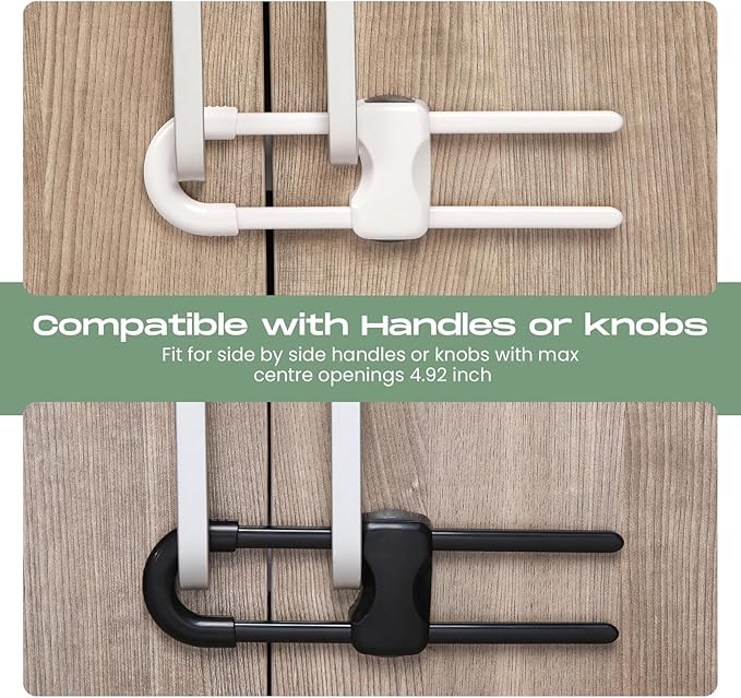 Jetec 10 Pieces Cabinet Locks for Babies, U-Shaped Proofing Drawers Safety Child Locks Adjustable, Easy to Use Childproof Latch for Knob Handle on Kitchen Door Storage Cupboard Closet (White, Black)
