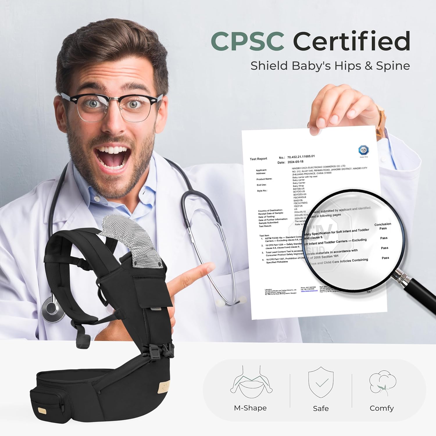 - Multifunction: 6-in-1 Baby Carrier with Hip Seat can not only provide different methods of use; it can also liberate parents' hands and do their own things; it can also help mothers to recover after childbirth; and provide post-natal insurance for babies and mothers to prevent accidents.