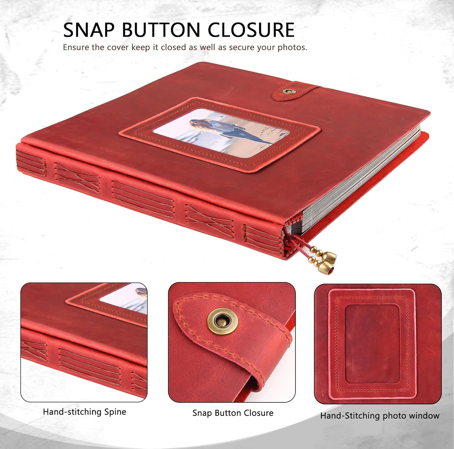 - This handmade leather photo album is entirely handmade from high-quality distressed genuine leather for durability and a premium feel. Over times the leather will develop a unique patina. Meanwhile, manual stitching with waxed thread complements to the retro vibe and provides enhanced durability.