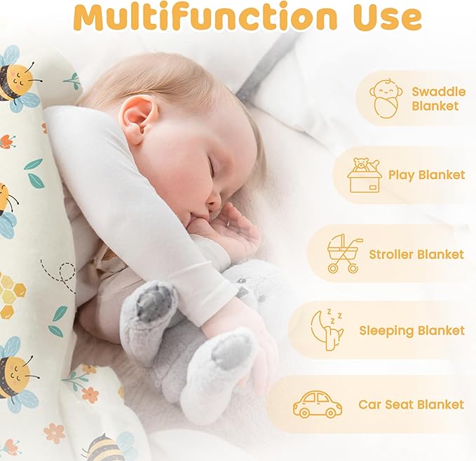 - Comfortable material: the baby blanket is light, ensuring your little one stay comfortable all year round; one side features a smooth surface while the other is 3D dotted