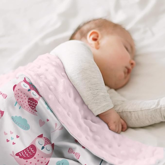 Owl Kid Blanket for Girl - Soft Kids Throw Minky Blankets with Dotted Backing for Girls - Kids Nursery Crib Blanket 30x40
