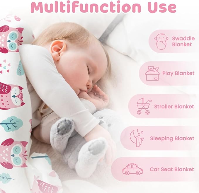 - Comfortable material: the baby blanket is light, ensuring your little one stay comfortable all year round; one side features a smooth surface while the other is 3D dotted