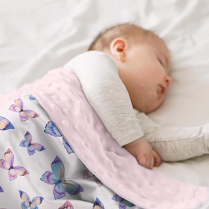 SANDJEST Kid Blankets for Girls 30 x 40 - Kids Throw Minky Blankets with Layer Dotted Backing - Gifts for Birthday Nursery Room Decor
