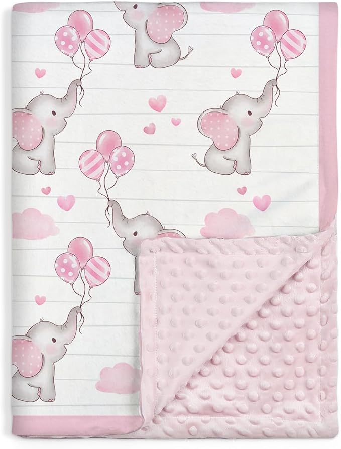 SANDJEST Elephant Kid Blanket for Girl - 30 x 40 Minky Throw Blankets for Girls - Gift for Kids on Birthday
