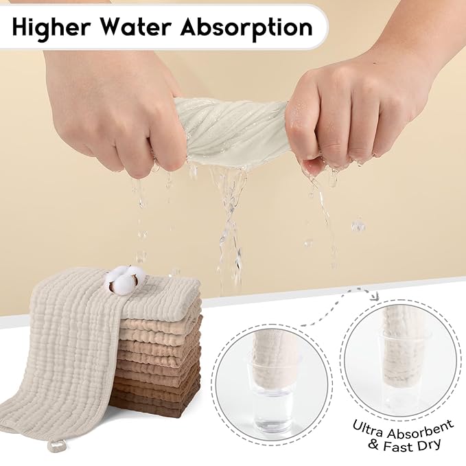 - ❤ Verstile Baby Essentials: Designed with a gender-neutral color, our muslin burp cloths will be a thoughtful present for any occasion like baby shower, baby registry, birthday, Christmas, or you can use it as burp rags, baby bibs, baby washcloths and towels, baby wipes, anything else that's available. A must-have for teething baby and mess no more.