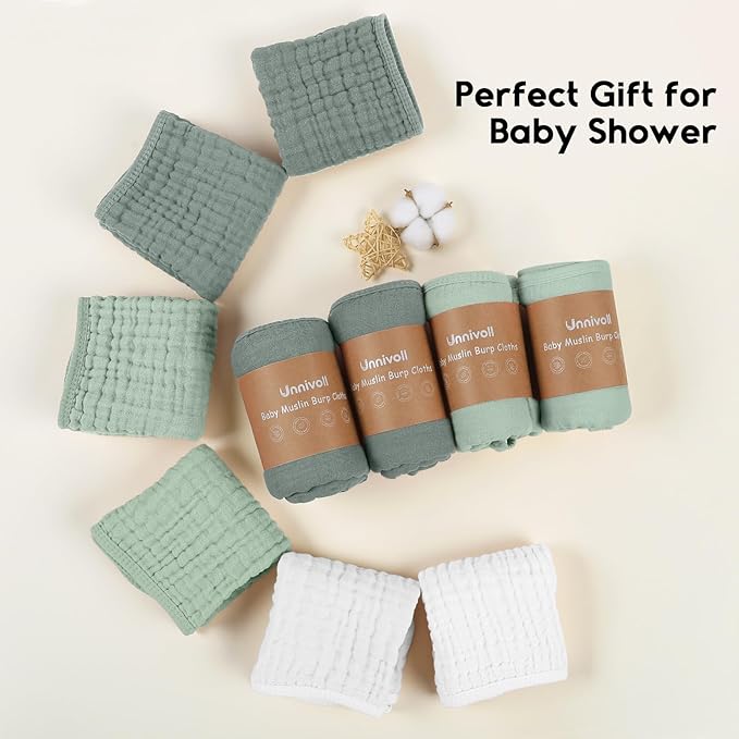 - ❤Safety Comes First: Made from 100% premium quality cotton,Unnivoll muslin burp cloths is certified to meet Consumer Product Safety Commission (CPSC) guidelines, eliminate all potential risks and provide a soft, breathable, cloud like comfort for your little one. The natural muslin is also suitable for all skin types including sensitive and delicate skin, perfectly use on the face, hand and body.