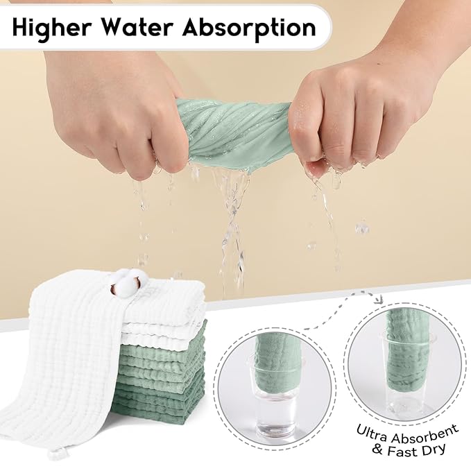 - ❤ Verstile Baby Essentials: Designed with a gender-neutral color, our muslin burp cloths will be a thoughtful present for any occasion like baby shower, baby registry, birthday, Christmas, or you can use it as burp rags, baby bibs, baby washcloths and towels, baby wipes, anything else that's available. A must-have for teething baby and mess no more.