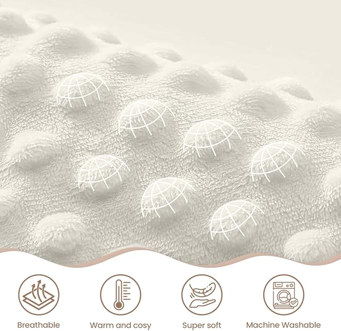 - Comfortable material: the baby blanket is light, ensuring your little one stay comfortable all year round; one side features a smooth surface while the other is 3D dotted