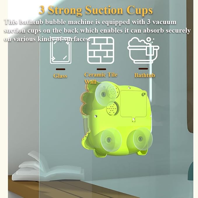 - 3 Strong Suction Cups: This bathtub bubble machine is equipped with 3 vacuum suction cups on the back which enables it can absorb securely on various kinds of surfaces.