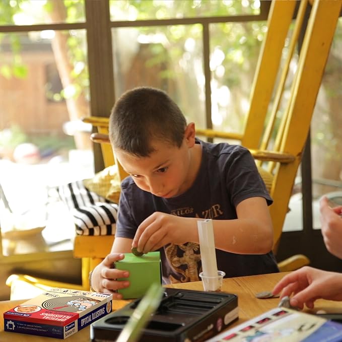 - DISCOVER YOUR KID’S INNER EINSTEIN! This STEM science kit Introduces the amazing world of Optical Illusions. Designated as a s science kit for kids aged 8-year-olds and above. Kids will have an awesome time experimenting, discovering, and fostering a lifelong love for science.