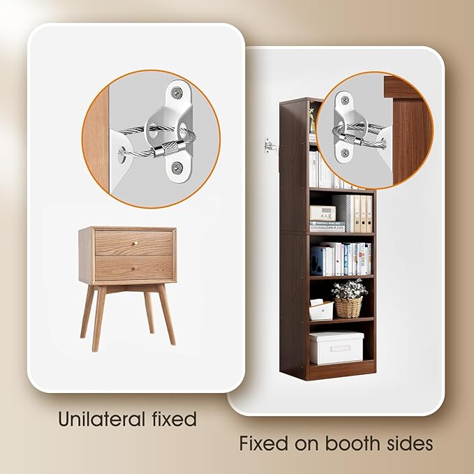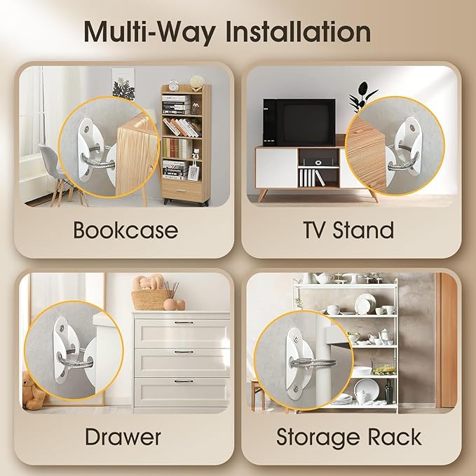 - 【MULTIPLE FURNITURE APPLICATION】Furniture anchors straps for your more needs, The package includes adjustable straps, brackets, screws, and wall anchors. Perfect for anchoring cabinets, drawers, dressers, bookcases, wardrobes, armoires, TV stands, and any furniture