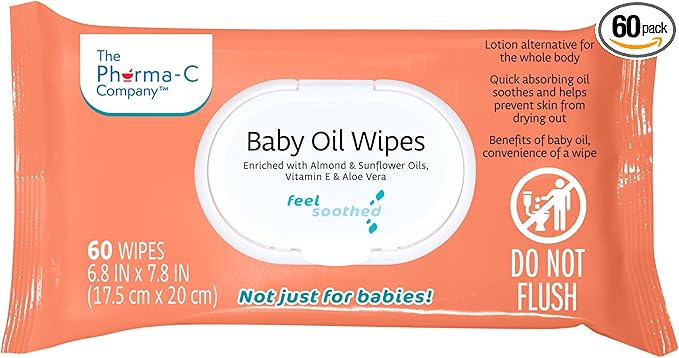 The Pharma-C Company Baby Oil Wipes. (60 Wipes) Enriched with Almond and Sunflower Oils, Aloe and Vitamin E.