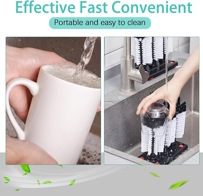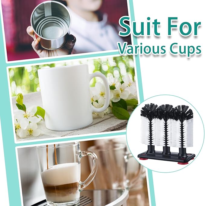 - Nice Quality: our cup washer brush is made from durable pp and nylon materials, strong enough for daily use; Equipped with a suction grip base, our cup washer with a suction base ensures secure attachment to sinks and stable operation
