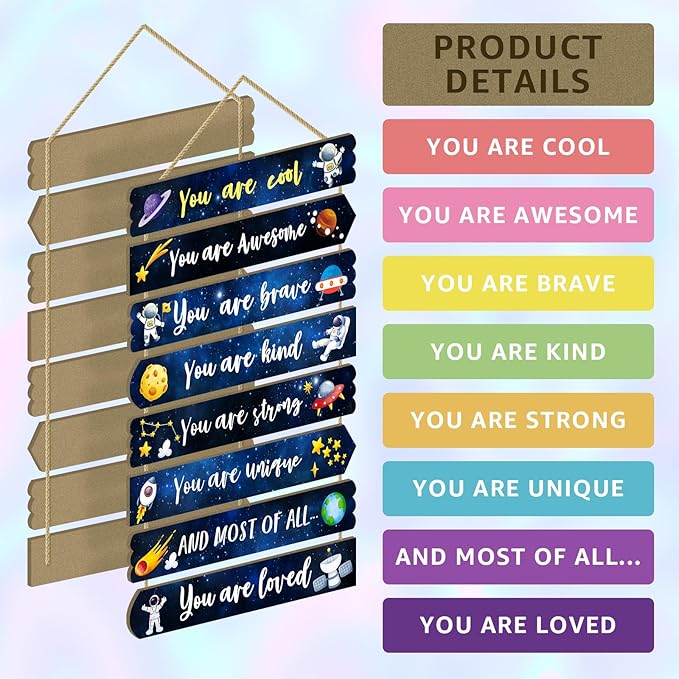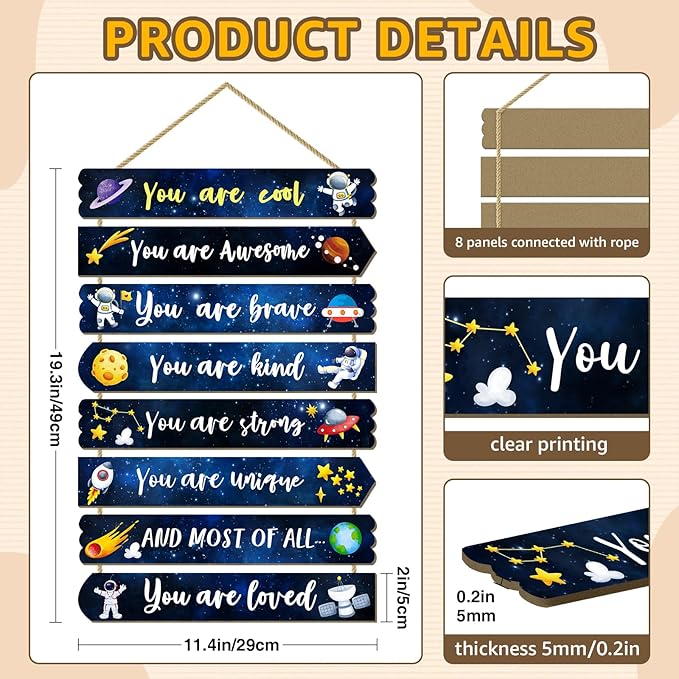 - Kids Room Decor: This interstellar wall decor sign is an ideal addition to kids' room decor. Each plaque features a different starry sky patterns, lets kids know about elephant which are educational, and the 8 motivational warming words can help boost children's self-confidence