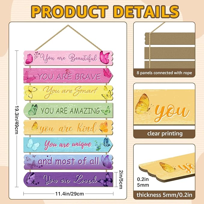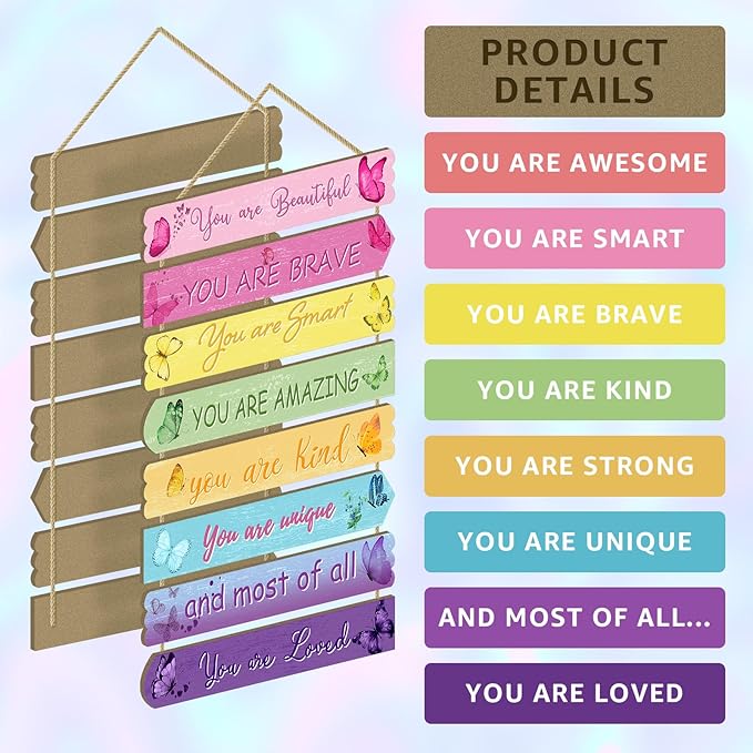 - Kids Room Decor: This Butterfly wall decor sign is an ideal addition to kids' room decor. Each plaque features a different butterfly patterns, lets kids know about butterfly which are educational, and the 8 motivational warming words can help boost children's self-confidence