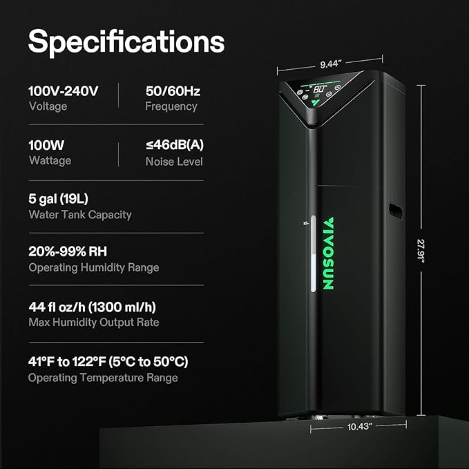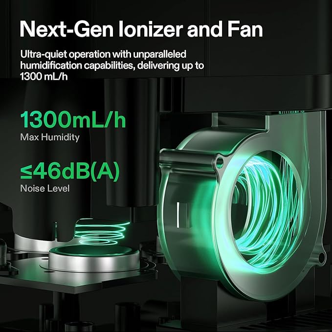 - Superior Humidity Control: The advanced ultrasonic atomizer and fan provide whisper-quiet, unparalleled humidification; The ultra-sensitive external temperature and humidity probe offers precise, targeted environmental readings; Additionally, the adjustable mist output and intelligent constant humidity function enable customization and maintenance for optimal humidity levels