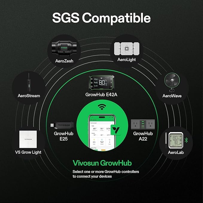 - Smart Control and SGS Compatible: WiFi-enabled to seamlessly connect to the Vivosun app, enabling remote control and real-time notifications; It integrates smoothly with the Vivosun Smart Grow System (SGS) to run custom grow recipes and allow for synchronized operation with other connected devices