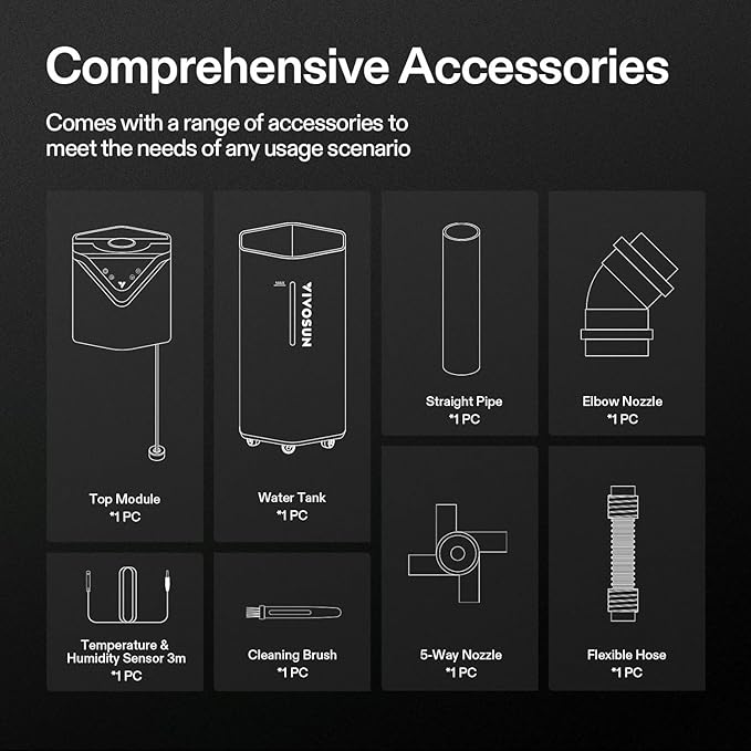 - Versatile Applications: Includes a comprehensive set of accessories—a 5-way nozzle, an elbow nozzle, a flexible hose, and a straight pipe—ensuring adaptability to any setting; It's ideal for grow tents, grow rooms, living rooms, bedrooms, and beyond