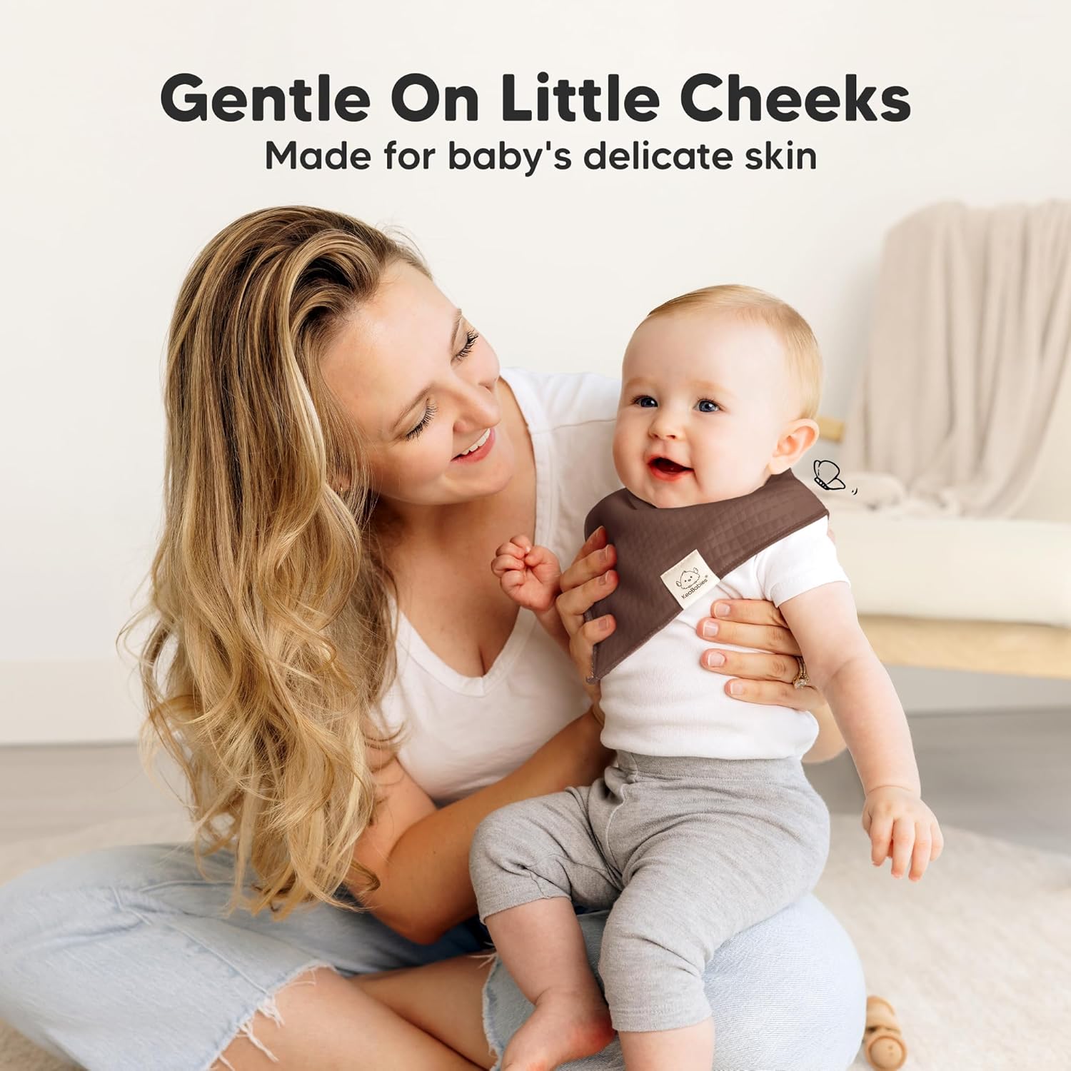 KeaBabies 8-Pack Bandana Bibs for Baby Girls, Boys - Organic Cotton Baby Bibs for Drooling & Teething Newborn, Toddler, Infant 0-36 Months, Extra Soft, Absorbent Cloth with Snaps (Driftwood)