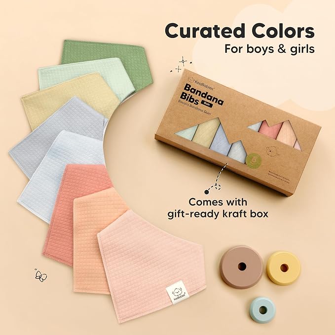 - 8-Pack Quin Bandana Bibs for Boys, Girls - Our organic baby bibs are exclusively designed by KeaBabies to ensure that your baby never runs out of styling options. Our drool bibs are easy to match, making them a fuss-free teething baby essential.