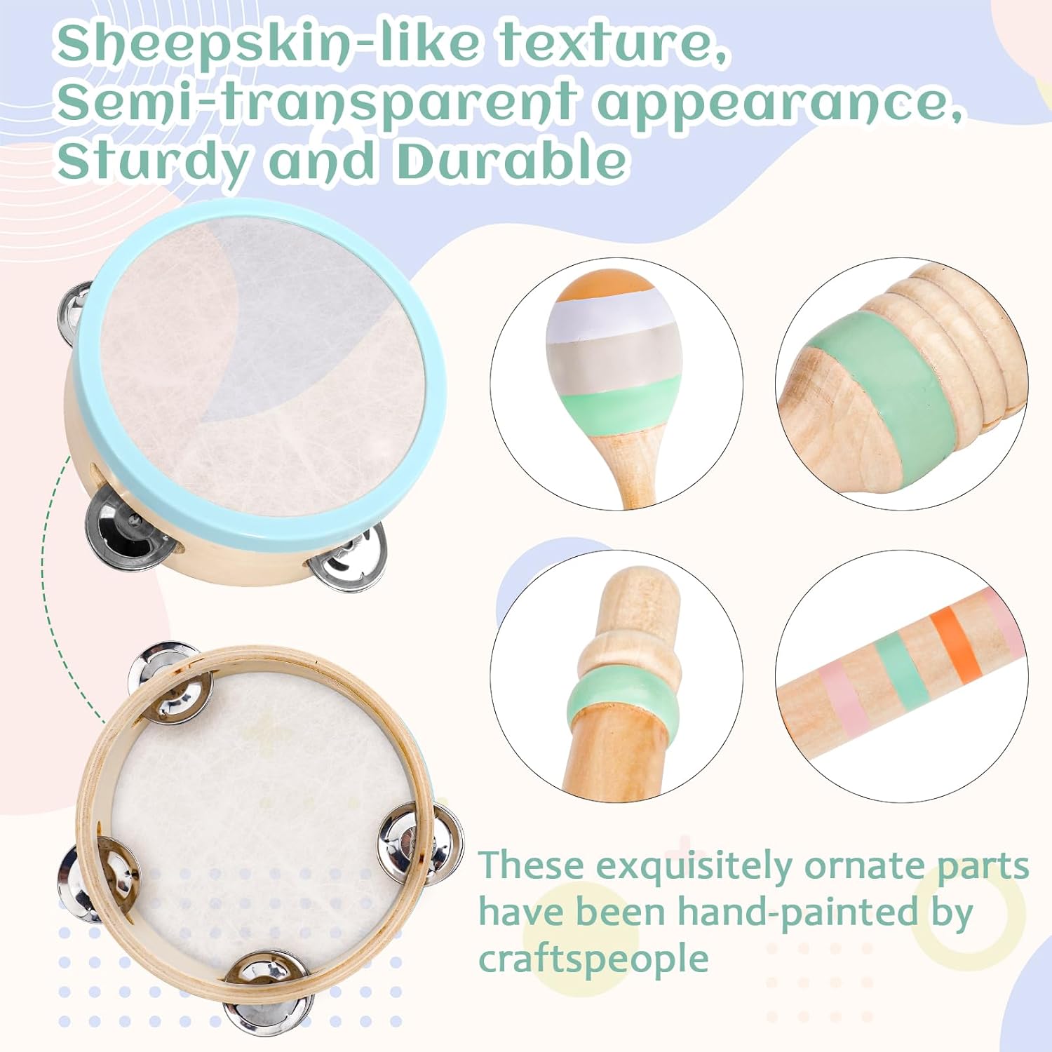 • ✹【Exquisite Craftsmanship】The drum surface of the tambourine is crafted from imitation sheepskin, offering a semi-transparent appearance and a realistic texture, ensuring durability and resilience. The clarinet, wood sounder, hand bell, and two maracas are adorned with intricate hand-painted designs. This meticulous hand-painting process not only requires considerable time and effort but also results in stunning, individualized pieces, each displaying unique beauty and charm.