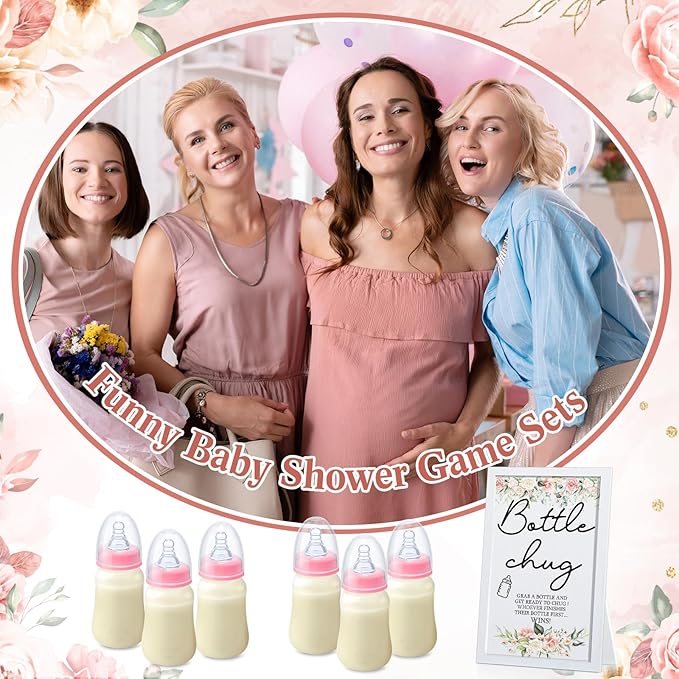 - Functional and Beautiful Designs: the baby shower game sign is decorated with flowers, elegant and attractive in appearance, and can add more charm to your party; Besides, its surface is printed with explainable words, which allow the guests to understand how to play this bottle chug game at once