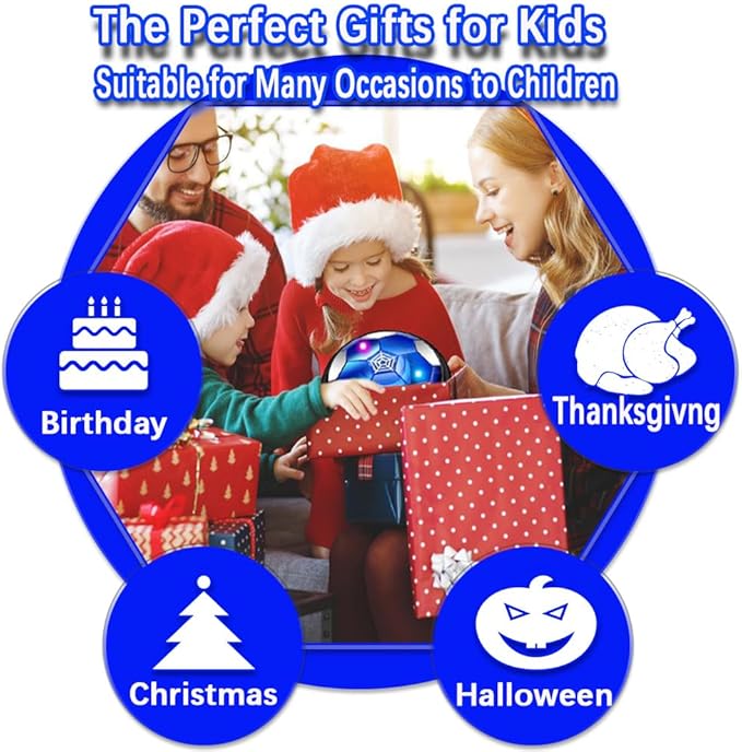 - ✅ Surprise Gift Idea: This air hover football is a fantastic birthday gift for children, it is also the most special football gift for boys and girls. The outdoor and indoor hover soccer is the ideal gift for boys' and girls' parties and is highly recommended for children aged 3 to 15 years. Perfect gift for Christmas, Children's Day, birthdays, Thanksgiving and Easter.