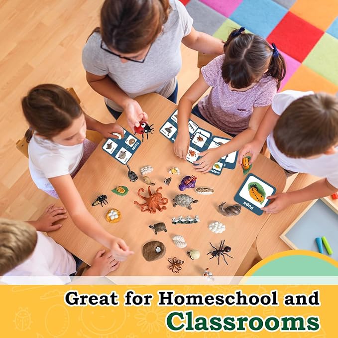 - Created for Fun Learning Activities - In Matesy life cycle set, it perfect to show life cycle of each species based on little figures and guide cards. Vivid figures and guide cards gives simple animal facts and discussion starters to learn while playing. It Help students visually explore the life cycle of Ladybug, Ants, Goose, Land Turtle, Snail, Octopus.