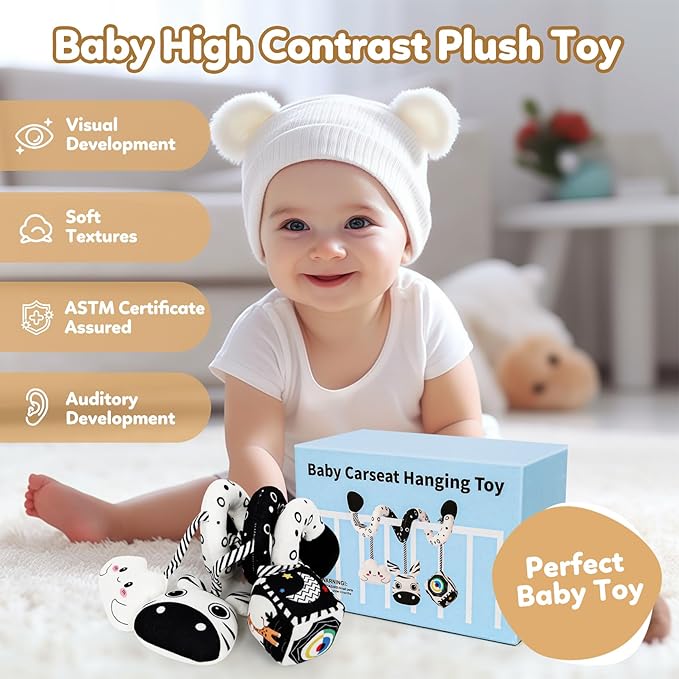 - 【Baby Stroller and Car Seat Hanging Toys】Hanging Toys designed for baby stroller and car seat, baby carrier, crib and exercise gym. It's more an awsome developmental toy than a parent-child interaction toy for babies. Best present for newborn, baby showers, baby sprinkle, sip and see gifts, birthdays, Children's Day, Thanksgiving, Christmas, etc.