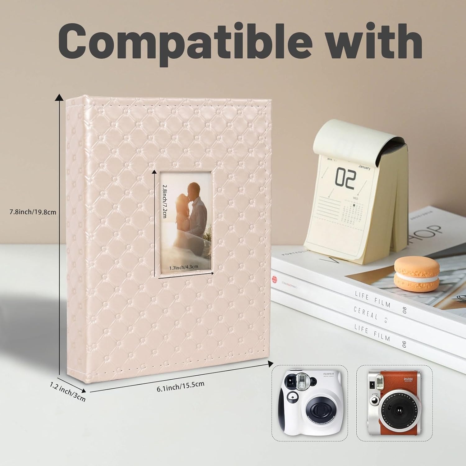 - 208 Photos Large Capacity: This polaroid photo album measures 7.8 x 6.1 x 1.2 inch, has an front window 2.8 x 1.7 inch. Our photo album holds a total of 208 photos, contains 52 individual pages with 4 photos per page