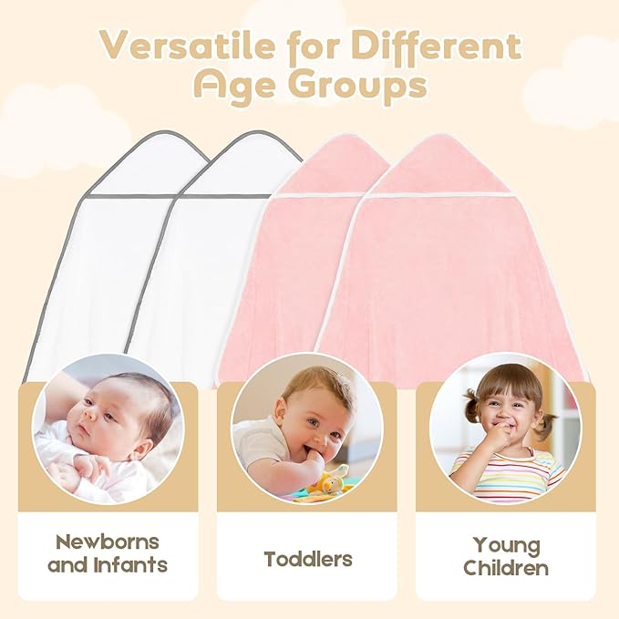 - Premium 4-Pack Set: Each purchase includes 4 high-quality hooded baby bath towels, made from ultra-soft coral fleece. Each towel measures 30 x 30 inches, providing ample coverage for newborns, infants, toddlers, and children up to 3 years old. The large size ensures complete coverage and comfort, making it easy to wrap your little one snugly after a bath