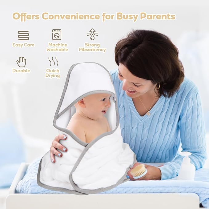 - Cozy Hooded Design: The hooded design helps keep your baby's head warm, providing additional comfort and protection after bath time. This feature also assists in drying your baby’s hair quickly, ensuring they stay warm and dry from head to toe. The cute and functional hood makes bath time more enjoyable and practical
