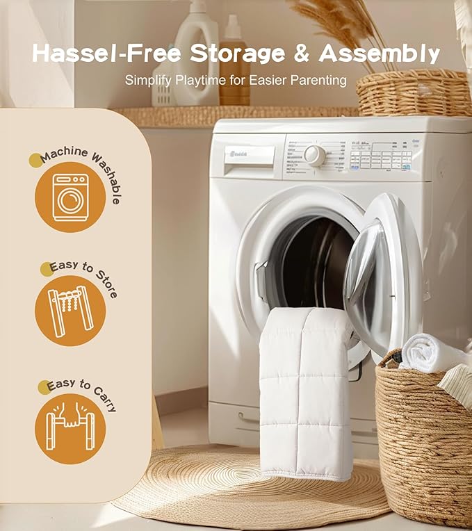 - COZY & SKIN-FRIENDLY MAT: Treat your little one to ultimate comfort with our soft, baby-safe play mat, measuring 35.6x17.1 inches. Crafted with care, the baby mat is machine-washable with quilted design for extra durability. The non-slip surface ensures safety for your baby's snug playtime, while the integrated mirror and teether toy encourage self-discovery and soothe your baby