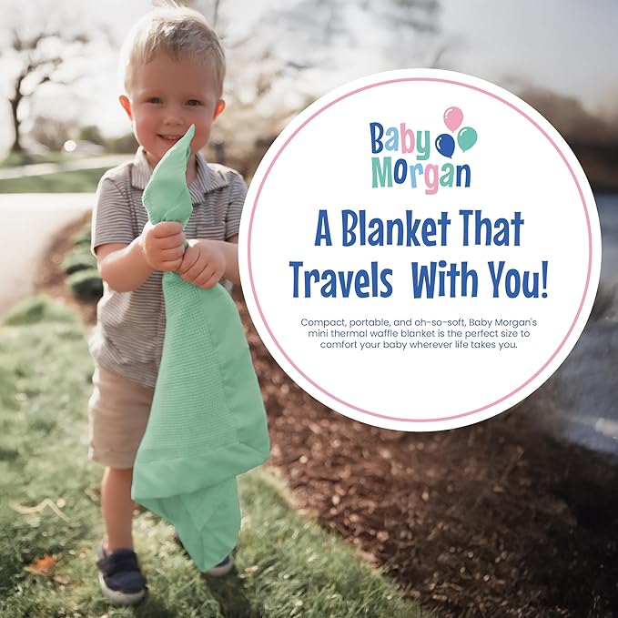 - MINI MINT BABY BLANKET: The Baby Morgan mini baby blanket in Mint measures 18" x 20", designed to be the perfect size for your little one’s comfort. The soft waffle knit baby blanket provides soothing warmth and a refreshing look, making it a great choice for your baby’s space, adding comfort and a peaceful feel to any room.