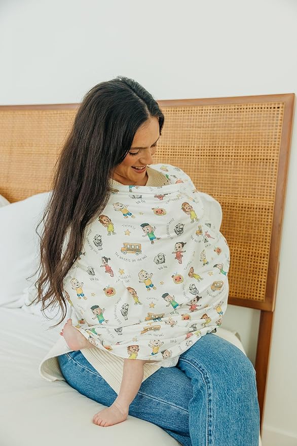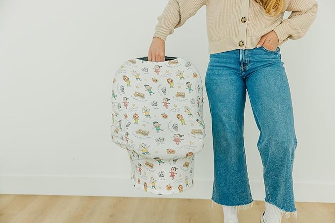 Copper Pearl Baby Car Seat Cover Canopy and Nursing Cover Multi-Use Stretchy 5 in 1 Gift 'CoComelon Friends' - One Size