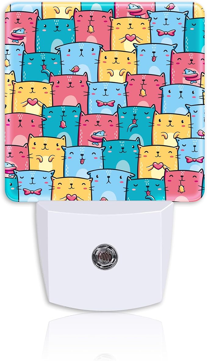 - 【Dusk to Dawn Sensor】This Cute Colorful Cats night light plug wall is equipped with a light sensor that automatically turns on at dusk or dim light and turns off at dawn or when there is sufficient light.Its smart design saves power and eliminates the need for manual switching