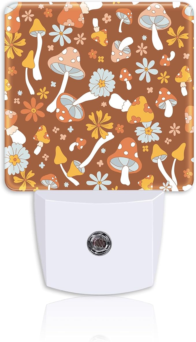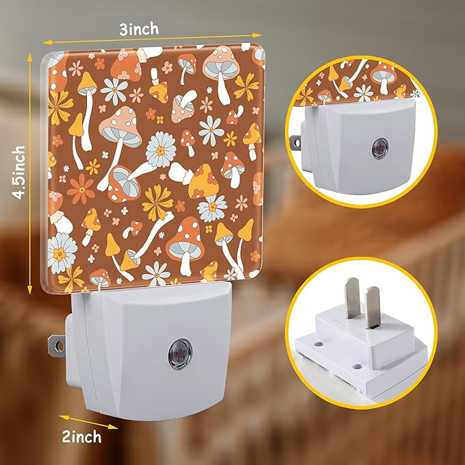 - 【Dusk to Dawn Sensor】This Retro Cartoon Mushrooms night light plug wall is equipped with a light sensor that automatically turns on at dusk or dim light and turns off at dawn or when there is sufficient light.Its smart design saves power and eliminates the need for manual switching