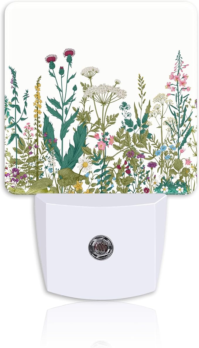 Vintage Wildflower Herbs Plug Night Light,Botanical Floral Night Light Lamp Auto Sensor Energy Efficient Dusk to Dawn Lights for Girls Boys Women Room Decor,Hallway,Kitchen,Bathroom,Nursery,Stairs