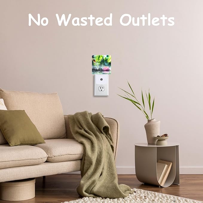 - 【Dusk to Dawn Sensor】This Black Stones and Pink Waterlily night light plug wall is equipped with a light sensor that automatically turns on at dusk or dim light and turns off at dawn or when there is sufficient light.Its smart design saves power and eliminates the need for manual switching
