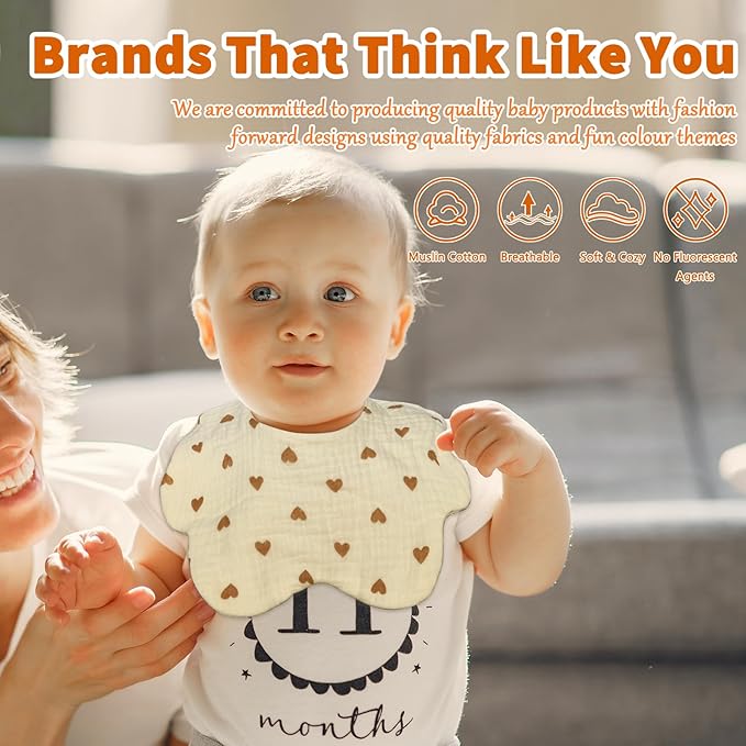 - Premium Craftsmanship: Our baby bibs are meticulously handmade with care and precision, using 4 layers of 100% muslin cotton. This premium quality material ensures superior softness, breathability, and durability, making them perfect for your little one's delicate skin.