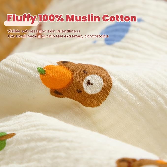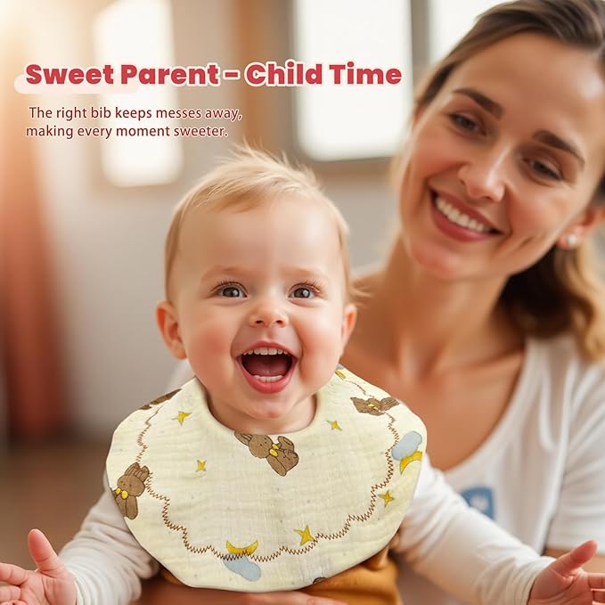 - Super Absorbent Baby Bibs for Drooling, Nursing & Teething Our 6‑layer muslin baby bibs quickly absorb drool and spills, keeping your little one dry and comfortable. Special quick‑drying cotton makes air drying easy, helping maintain shape since 100% cotton materials may shrink after drying.