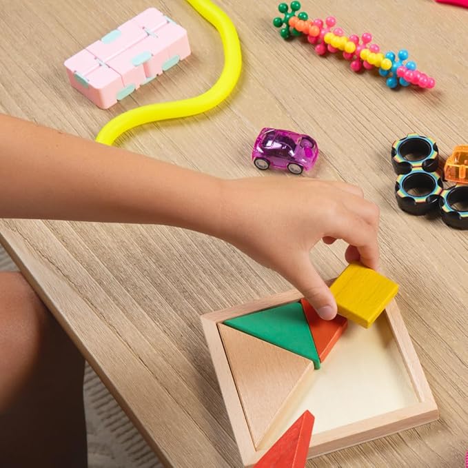 - IN THIS KIT: This engaging travel set includes magnetic building toys, LCD writing tablet to doodle and draw, tangram wooden puzzle, snowflake building toys, and various fidget and sensory toys for kids. Designed for kids toys age 4 and up, each toy promotes creativity, focus, and open-ended play. The travel bag offers extra space to add your child’s favorite toys or personalized activities.