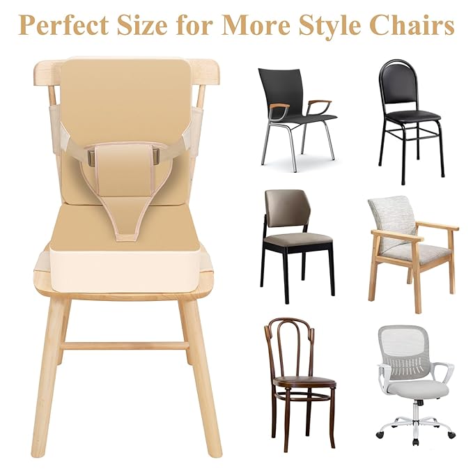 - 【Multiple Protection & Non-Slip】- Booster seat for dining table has four safety belts on the cushion, which can be fixed on the back and bottom of the chair, the safety belts on the front of the booster seat also secures your baby.There is anti-slip silicone at the bottom of the cushion to ensure that the baby booster seat does not slide off.