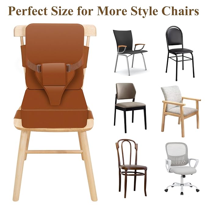 Toddler Booster Seat for Dining Table, Non-Slip Kitchen Chair Booster Seat with Backrest and Adjustable Straps, Portable PU Waterproof Travel Baby Booster Increasing Cushion