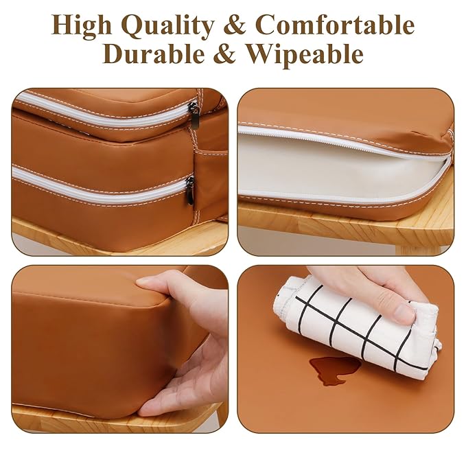 - 【Easy to Clean】Toddler booster seat for kitchen chair is made of high-quality waterproof PU synthetic leather, which is easy to clean and can be wiped clean with a damp towel. The toddler booster seat for dining table features a zipper design for easy removal and thorough cleaning.