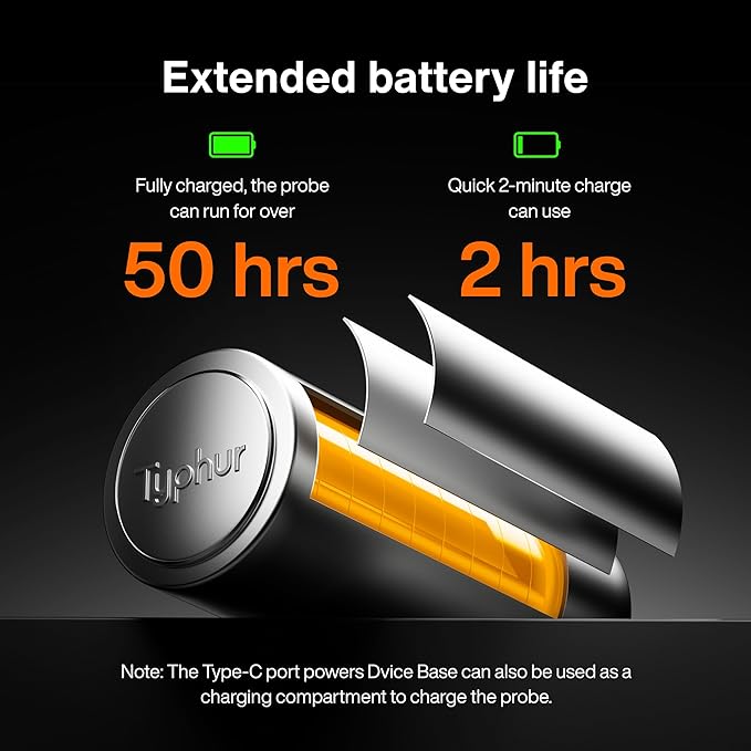 - Monitor Anywhere with WiFi: Monitor your cook from anywhere with the Typhur app by linking the meat thermometer station to WiFi (2.4GHz). Keep track of your meat temperature while you're on the go without distance limitation.