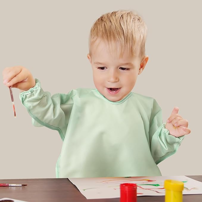 - Fits 6-24 Months - These long-sleeve baby bibs feature an adjustable neck strap and a back tie closure for a perfect fit. Elasticized cuffs allow for customizable sleeve length, making them ideal for babies and toddlers aged 6 to 24 months to paint or eat independently.