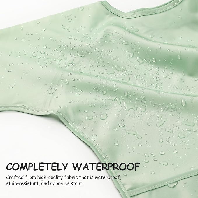 - Completely Waterproof - Crafted from premium waterproof polyester fiber and an EVA waterproof layer, this long-sleeve bib is entirely waterproof. It's free from lead, PVC, BPA, phthalates, and vinyl, ensuring safety and peace of mind.