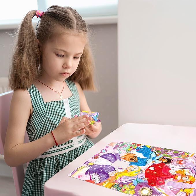 - 4-PACK TODDLER PUZZLES: high-quality cardboard puzzles for 3 year old with irregular self-correcting shapes that show diverse princes, mermaids and unicorns; Our puzzles are a great Christmas gift for kids