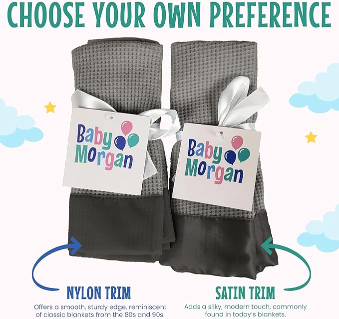 - VINTAGE STYLE BLANKET WITH SATIN TRIM: This cozy waffle blanket baby features a nostalgic design inspired by 80s and 90s baby crib blankets, complete with a smooth satin trim. Its timeless vintage look brings warmth, charm, and style to any nursery setting.
